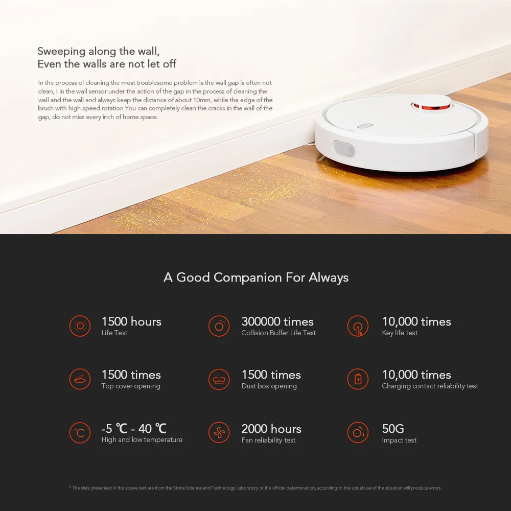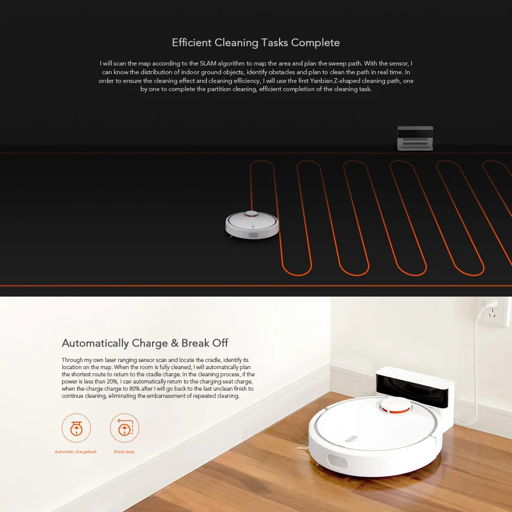 Робот-пылесос Mi-это высокоумное устройство для уборки дома с 12 различными датчиками. Интеллектуальное планирование пути, 1800 ПА Мощное всасывание, дистанционное управление приложением. Достаточно умный, LDS и многие другие датчики, создание карты, планирование пути, автоматическое отправление, отбой, Достаточно сильный, Большой всасывающий вентилятор, плавающая основная щетка, динамический контроль скорости кисти, 10 мм развертки вдоль стены. Достаточно простойМинималистичный дизайн, большая батарея 5200 мАч, дистанционное умное управление, Очистка карты в режиме реального времени.