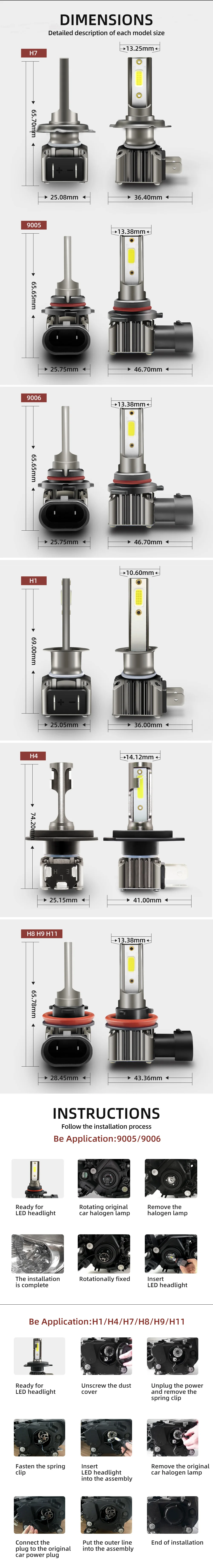 Название: светодиодные лампы для автомобильных фарМощность светодиода: 40 Вт/параСВЕТОДИОДНЫЕ Чипы: чипы COBНапряжение: 12 ВВодозащита-Скорость передачи данных: IP68Система охлаждения: без вентилятора, без шума, физическое охлаждениеРабочая температура:-40 °C ~ + 80 °CСрок службы: более 30000 часовС переключением между дальним и лампы: H1 H7 H8/H9/H11 9005/HB3 9006/HB4Дальний/ближний свет лампы: H4/9003/HB2 дальний/ближний светПрименимость:Этот светодиодный свет является только частично без ошибок, не полностью canbus для специального автомобиля.Если вы не уверены в установке, пожалуйста, свяжитесь с нами.Применяются для: фар (дальнего света, ближнего света); Противотуманных фар; Фар мотоцикла.Упаковка: 2 светодиодных лампы для фар
