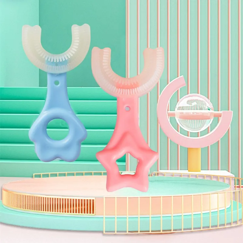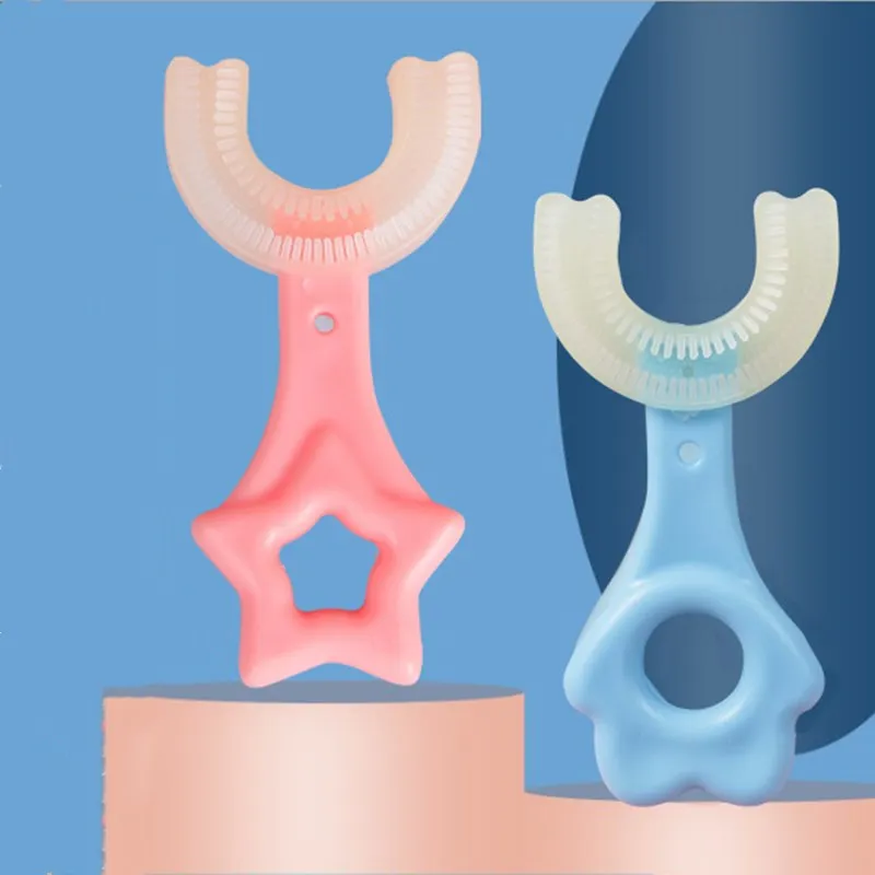 Детская зубная щетка 360 градусов U-образная зубная щетка с ручкой Силиконовая зубная щетка для ухода за полостью рта для детей в возрасте от 2 до 12 лет