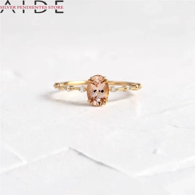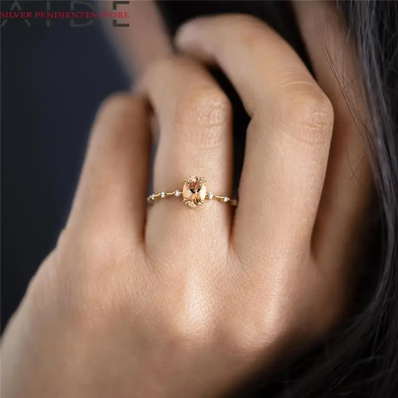 AIDE, Стерлинговое Серебро 925 пробы, цвета шампанского, бриллианты, кольца для женщин и девочек, свадебный подарок, минималистичные тонкие кольца с драгоценными камнями, ювелирные изделия