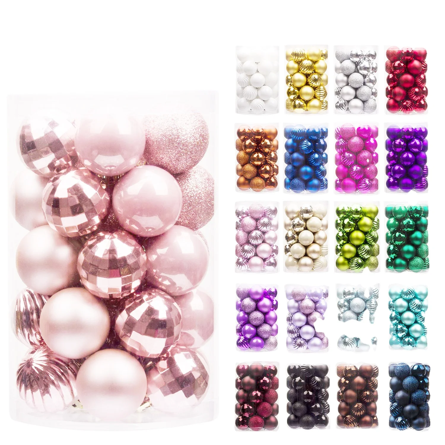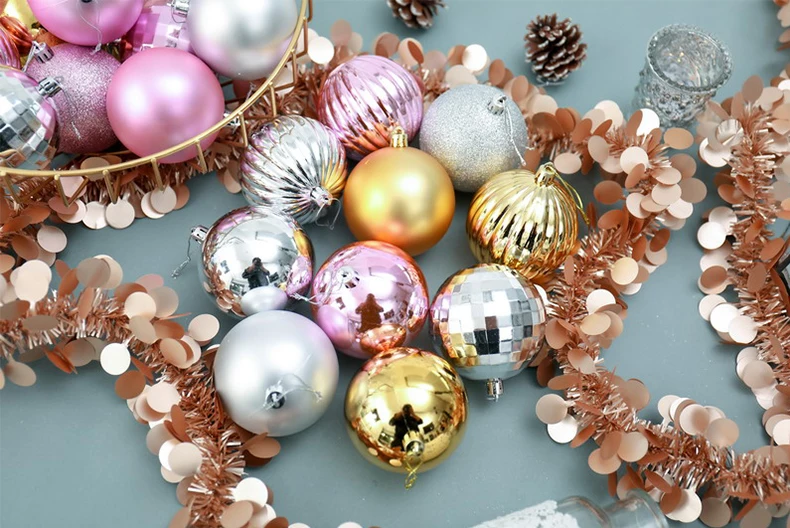Пластмассовые шары из розового золота 34 шт., украшение для рождест...