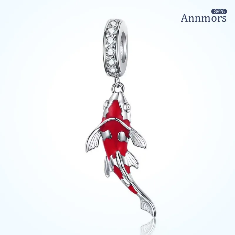 AnnmorsEnamel Подвески посеребренные Подвески Подходит для Pandora оригинальное ожерелье для браслета женские изысканные ювелирные изделия красная счастливая рыба кои