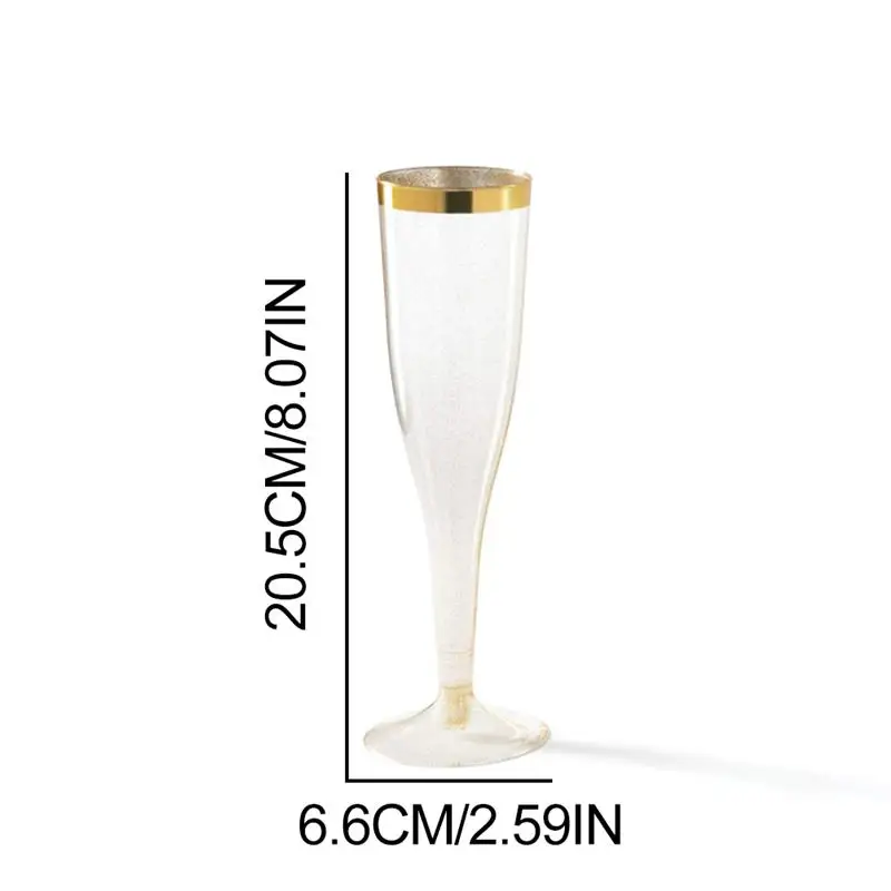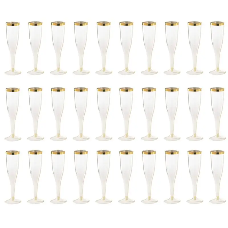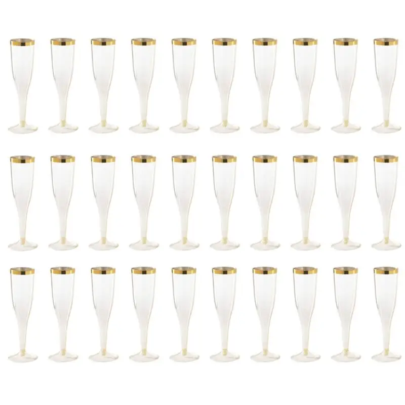 30 шт., пластиковые бокалы для шампанского с золотой оправой