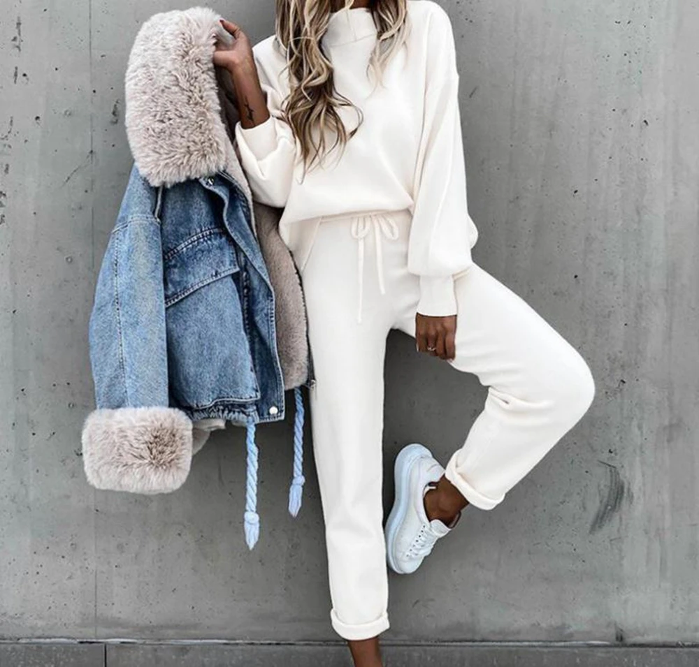 Женский комплект из 2 предметов, однотонный пуловер, спортивные брюки, топ на молнии и штаны, полный зимний спортивный костюм, плотная эластичная одежда для женщин