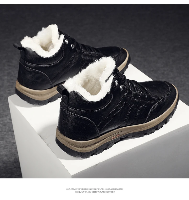Мужские зимние ботинки с плюшевой подкладкой, черные водонепроницае...