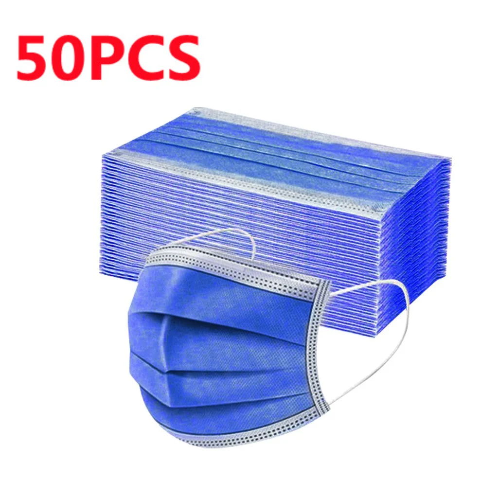 Маска одноразовая однотонная для мужчин и женщин, маска 3-слойная с петлями для ушей, Одноразовая, для косплея на Хэллоуин, 50 шт.