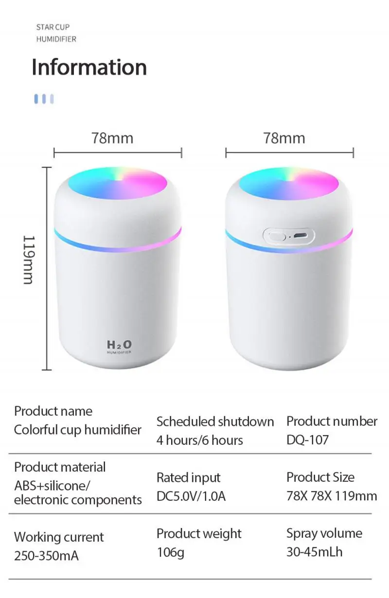 Мини увлажнитель арома-масла диффузор. 300 мл резервуар для воды. С красочным ночным светильник.