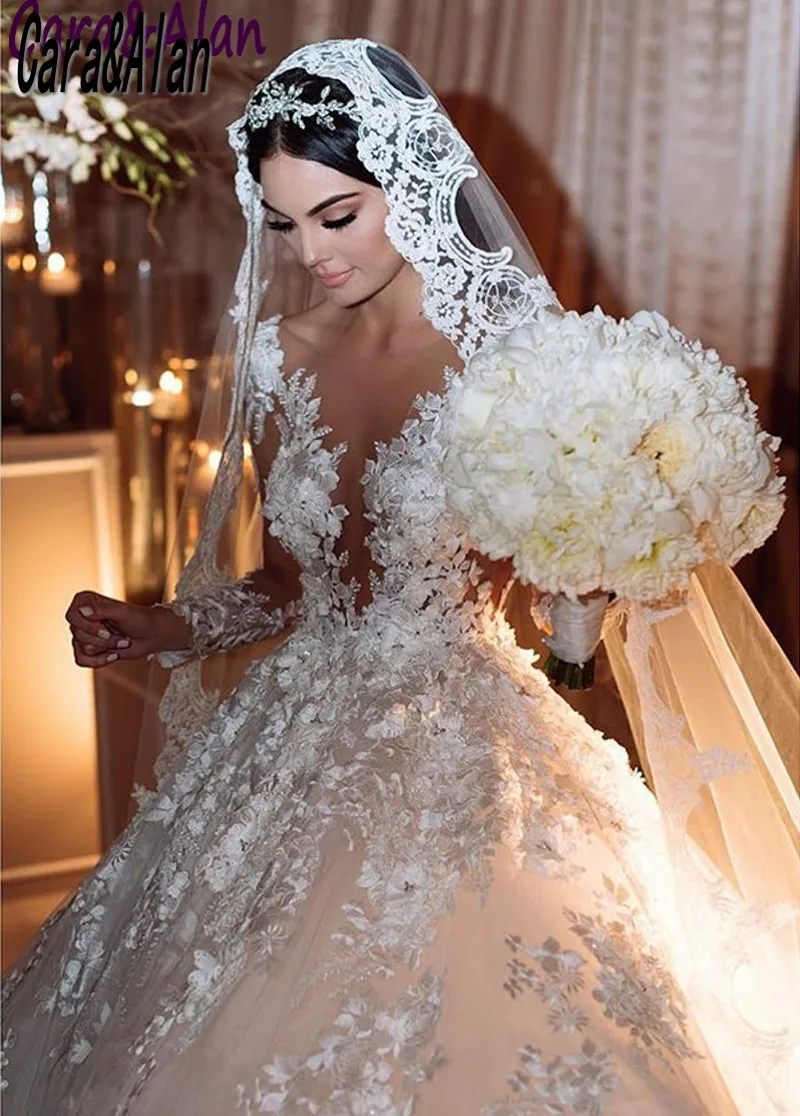 Роскошные Королевские Свадебные платья Дубай с длинными рукавами и ...