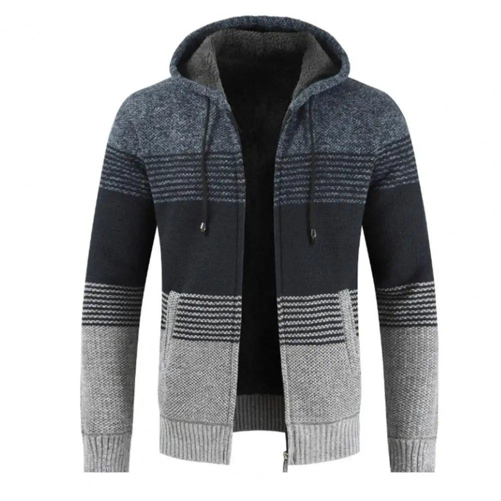 Мужское однотонное трикотажное пальто, зимняя куртка с капюшоном, не скатывается, для повседневной носки