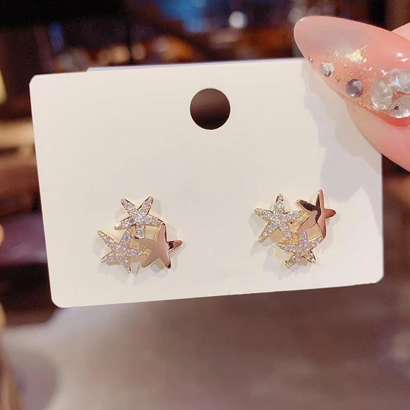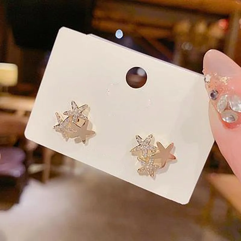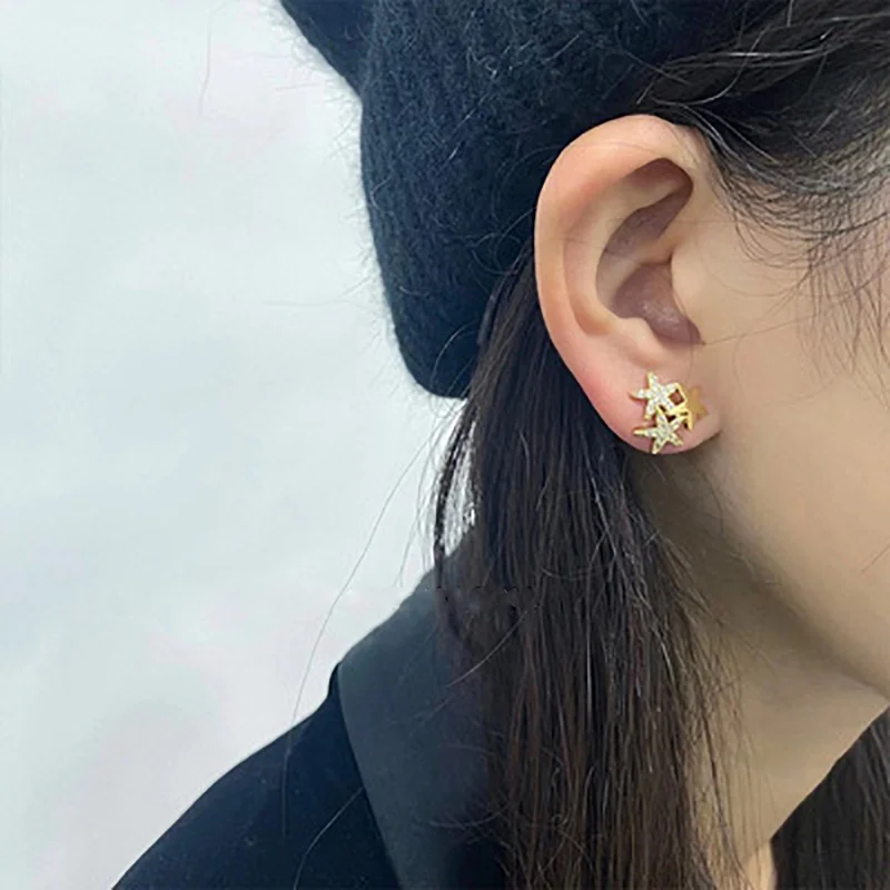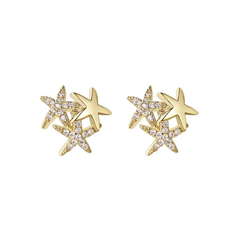 Женские длинные серьги-гвоздики в виде морской звезды с бриллиантами