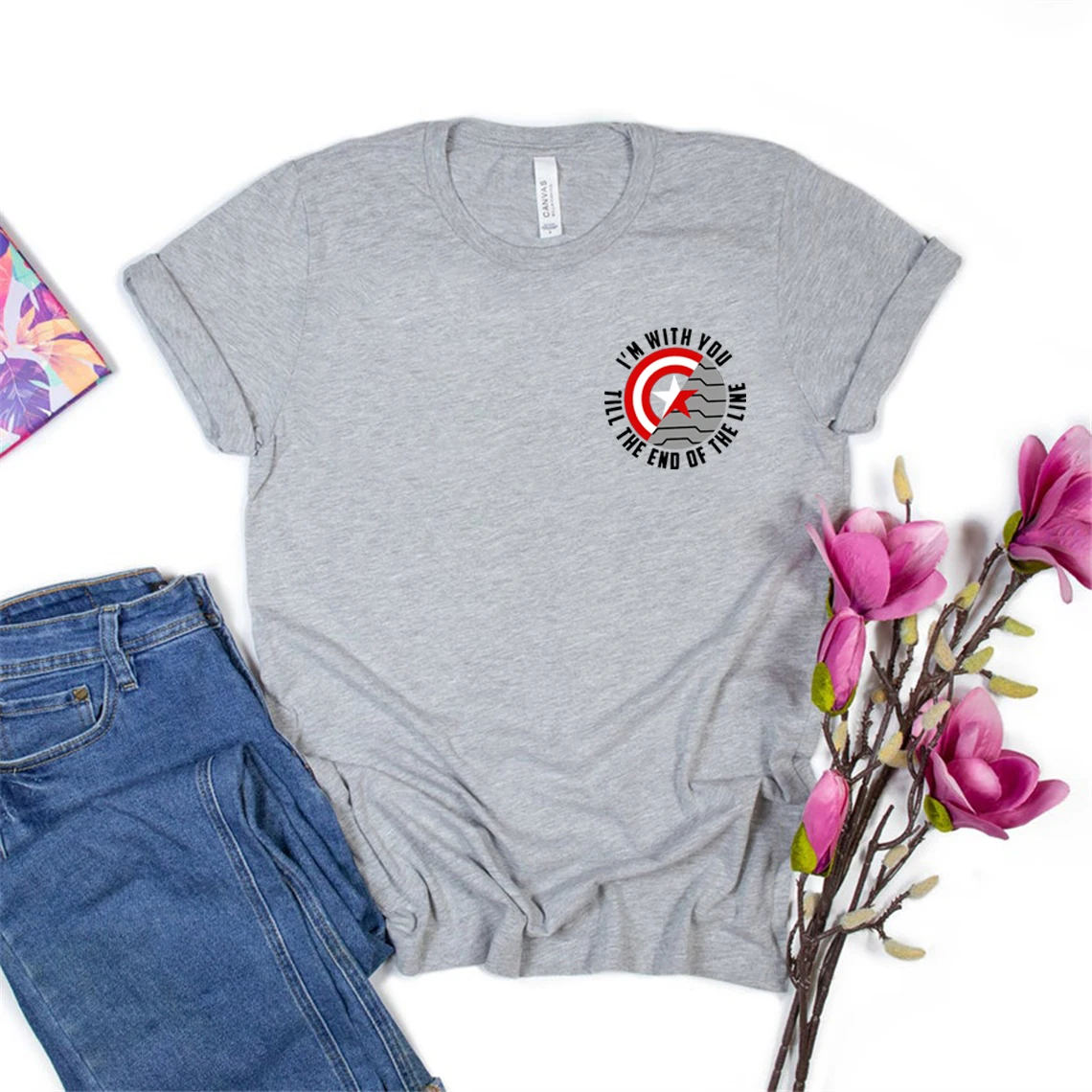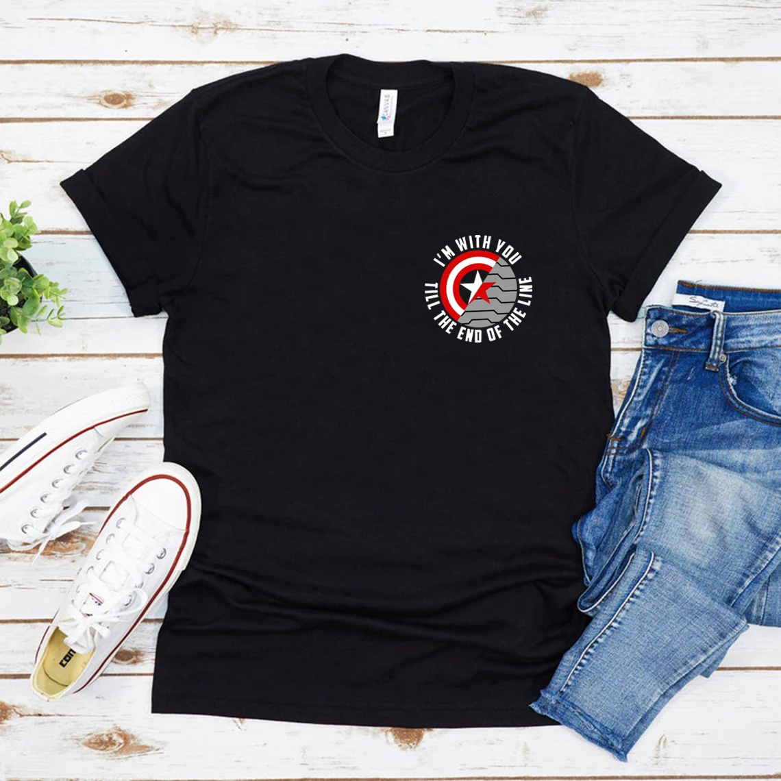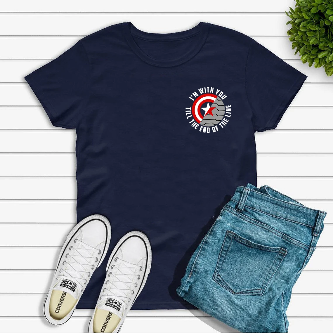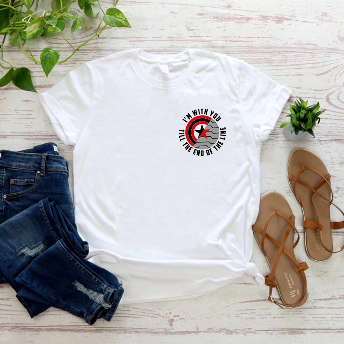 Зимняя рубашка с изображением солдата с надписью I'm with You To The End of The Line, футболка Bucky Barnes, женская футболка с рисунком, Женский Топ