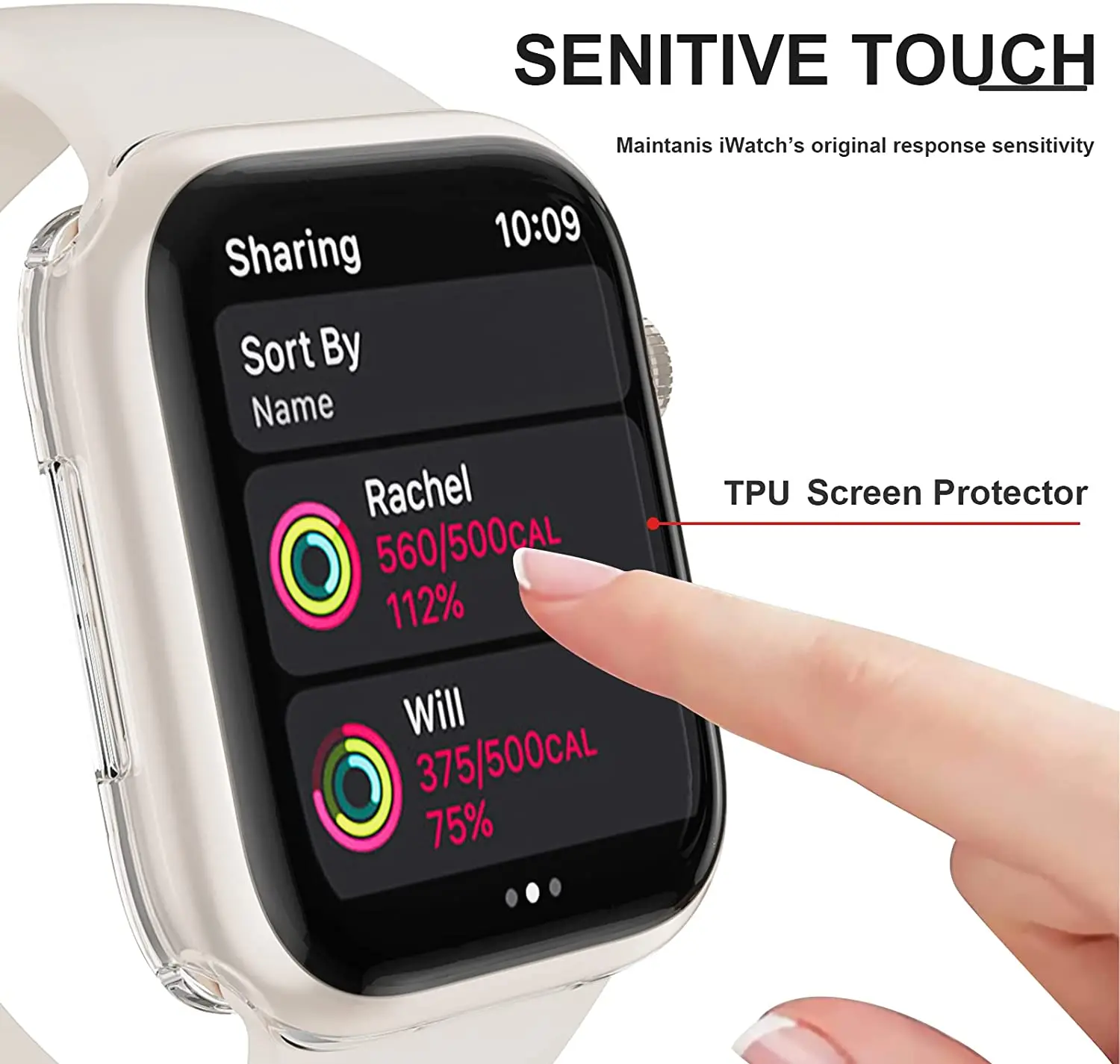 Защита экрана для Apple Watch Series 7, чехол 41 мм 45 мм, Мягкий бампер из ТПУ, полное защитное покрытие для iWatch 44 мм 40 мм 42 мм 38 мм