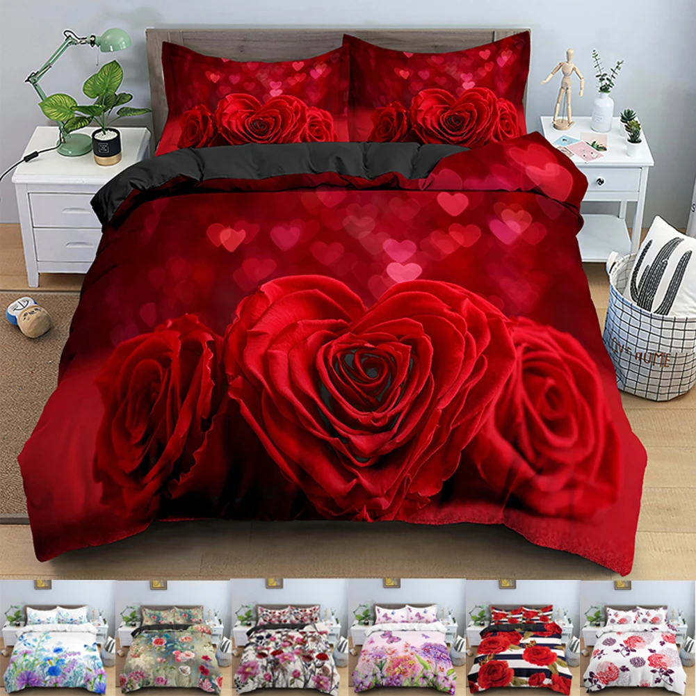 Комплект постельного белья с цветочным рисунком красной розы, подод...