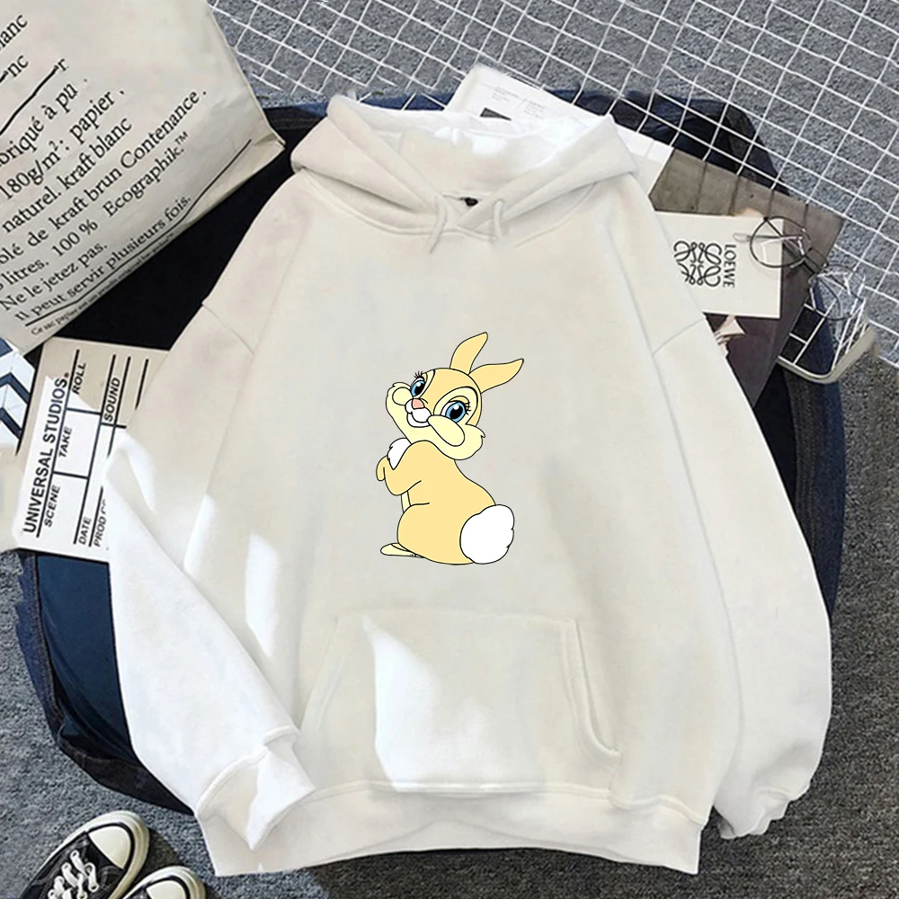 Осенние толстовки для женщин Бэмби пальмпер Кролик цветок Kawaii Disney пуловер с капюшоном одежда с мультяшным принтом женская теплая толстовка
