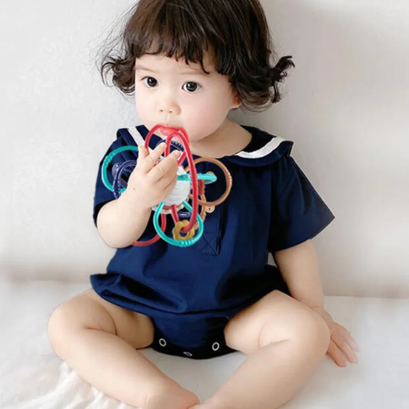 Характеристика:1. Игрушка для прорезывания зубов предназначена как шар, она круглая и гладкая, без острых краев и углов.2. Дизайн ярких цветов высокой чистоты освещает визуальное развитие ребенка и укрепляет его, чтобы определить различные цвета.