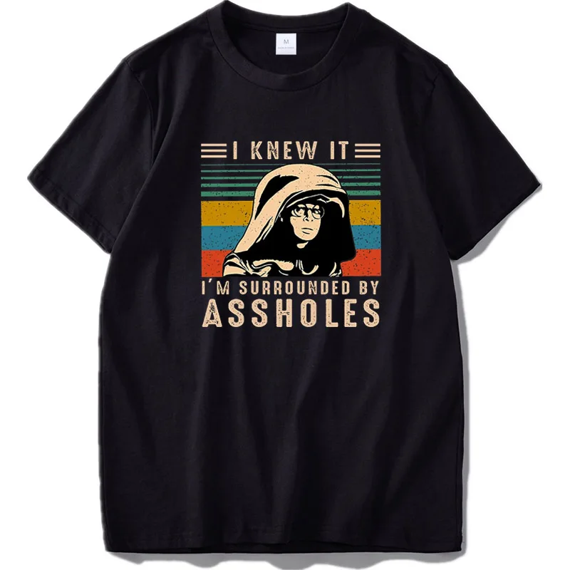 Футболка с надписью Я знаю это, Меня окружают мудаки, Винтажная футболка с изображением влюбленных космических шаров, сатирического комикса из 100% хлопка, Высококачественная футболка