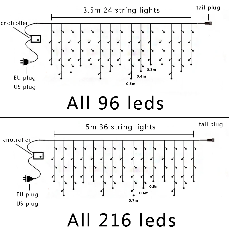 Постоянно контроллер яркости имеет только один режим-устойчивый, водонепроницаемый IP65, подходит для использования на открытом воздухе.Пожалуйста, имейте в виду, что в 8 режимов контроллер Водонепроницаемый IP44, пожалуйста, храните в недоступном для детей месте.Параметры● Наименование товара: светодиодный светильник для рождественской занавески.● Технические параметры: 3,5 м X 0,3 м/0,4 м/0,5 м 96 светодиодов,5M X 0,5 м/0,6 м/0,7 м 216 светодиодов.● Материал: ПП, ТПР и CR-V сталь.● Водонепроницаемость: IP65.● Светодиодный цвет: синий/белый/Разноцветный/теплый белый● Источник питания: штепсельная вилка европейского стандарта● Сертификация: CE & RoHS.Особенности● Сосулька светильник s не пропускает воду и спроектирована таким образом, чтобы выдерживать светильник погоду или в любой другой вода разлива, что делает его идеальным для наружного декора.● Светильник-это ряд светодиодов, которые очень хорошо рассеивают светильник и обеспечивают мощный, но даже светильник без резких Бликов или теней.● Различные размеры и светодиодный индикатор могут удовлетворить ваши потребности в украшении. Рождественские елки, вечерние, свадебные, для дома, сада, окна, ванной комнаты, балкона, праздника, шоу, ресторана, отеля, коммерческого здания, торгового центра, магазина, паба, клуба, концерта, зал, кабаре, модное шоу, танец, сцена и т. Д.● Безопасная штепсельная Вилка для мужчин и женщин в комплекте, водонепроницаемая для внутреннего и наружного декора.Посылка включает в себя● 1 X светодиодный светильник для рождественской занавески.● Адаптер-1 шт.
