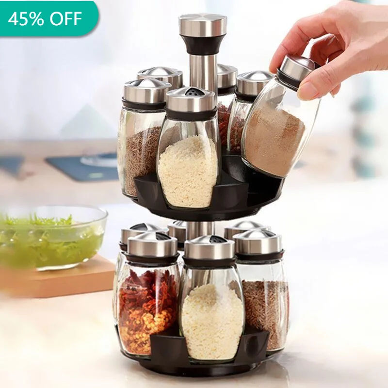 Набор из 16 бутылок для приправ, Двухуровневая вращающаяся стойка д...