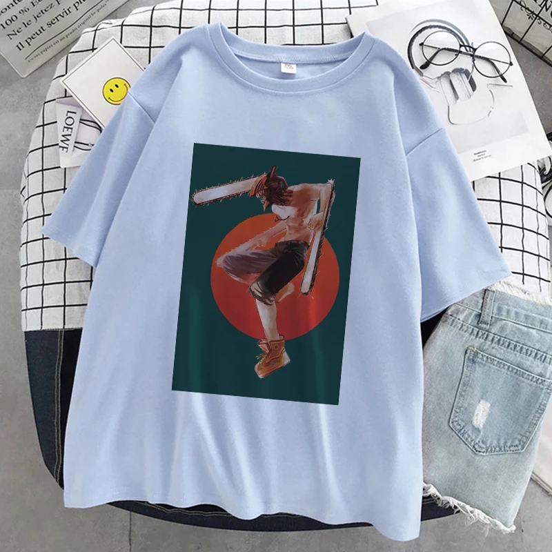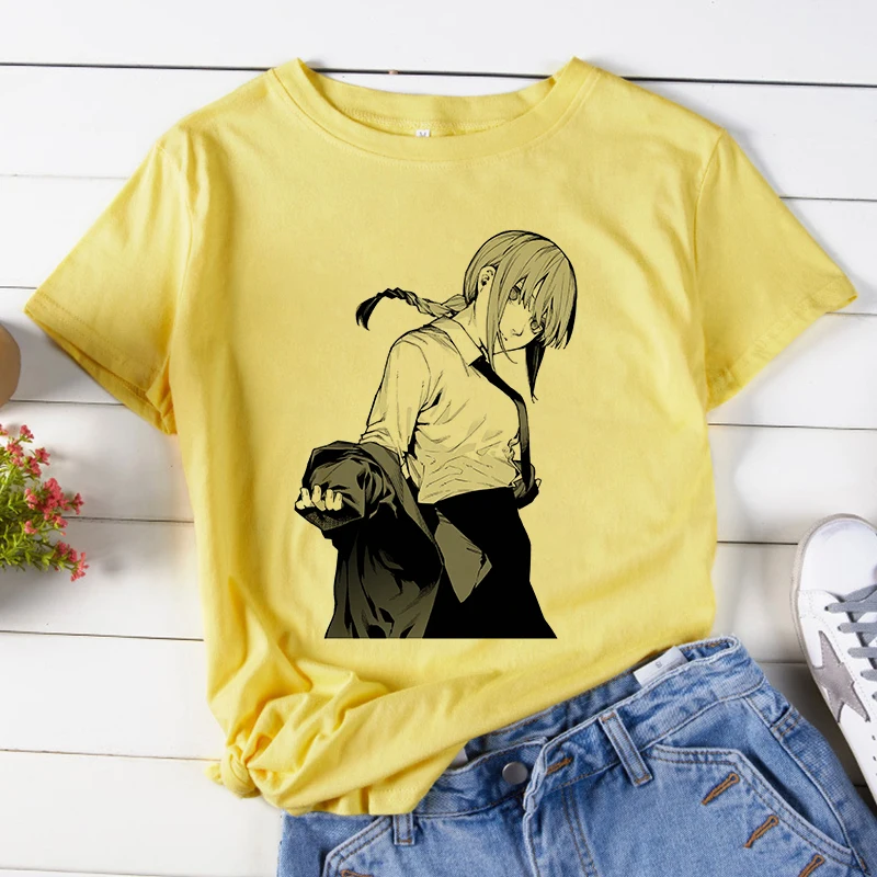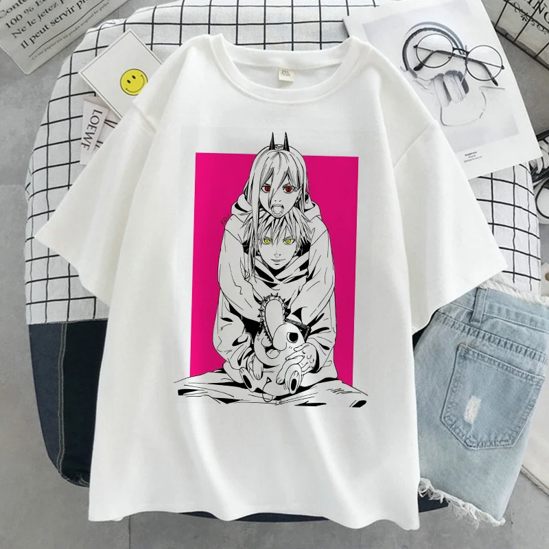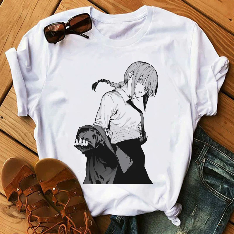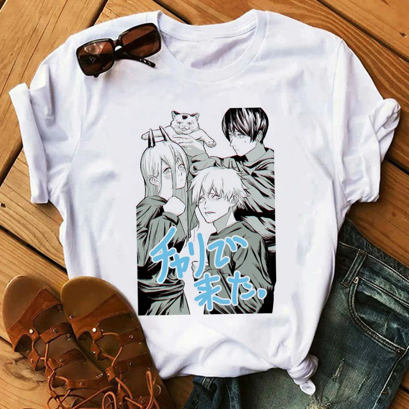 Футболка женская с принтом бензопилы, аниме, белая, повседневная, в Корейском стиле, Y2k, 2021