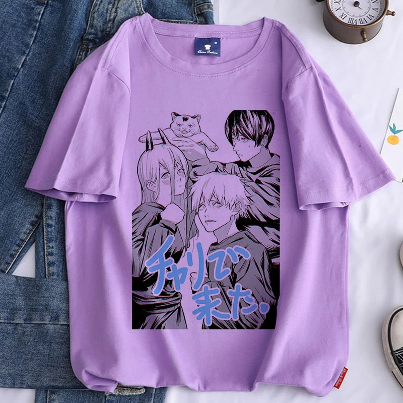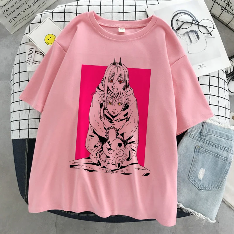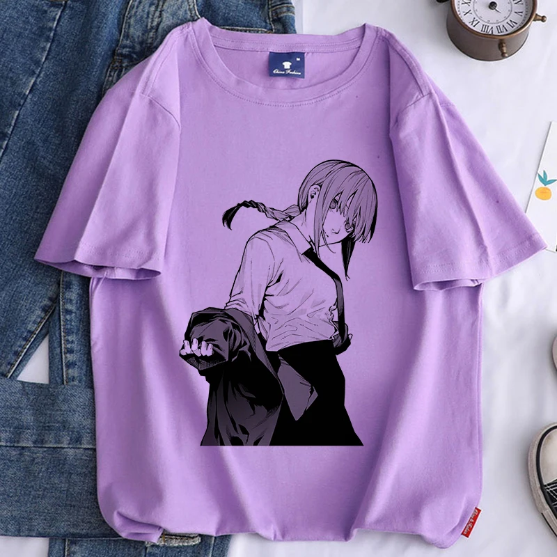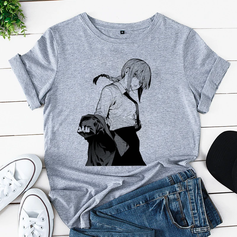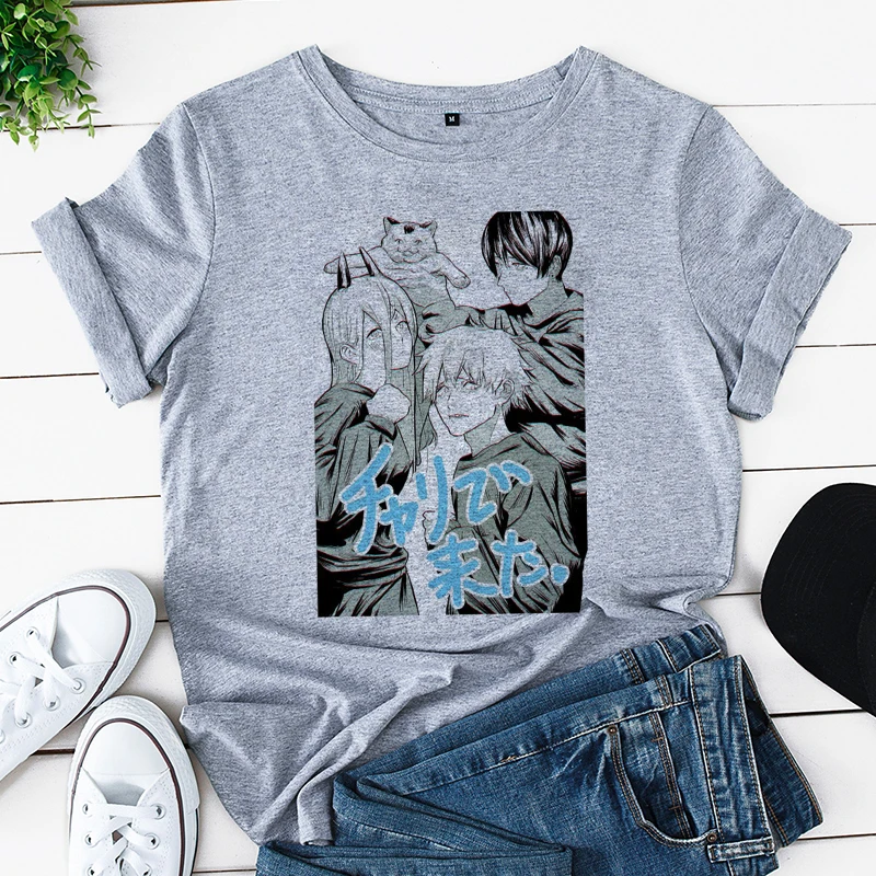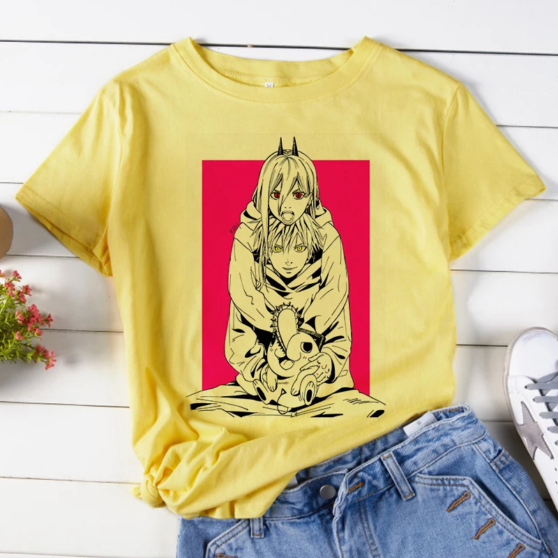 Футболка женская с принтом бензопилы, аниме, белая, повседневная, в Корейском стиле, Y2k, 2021