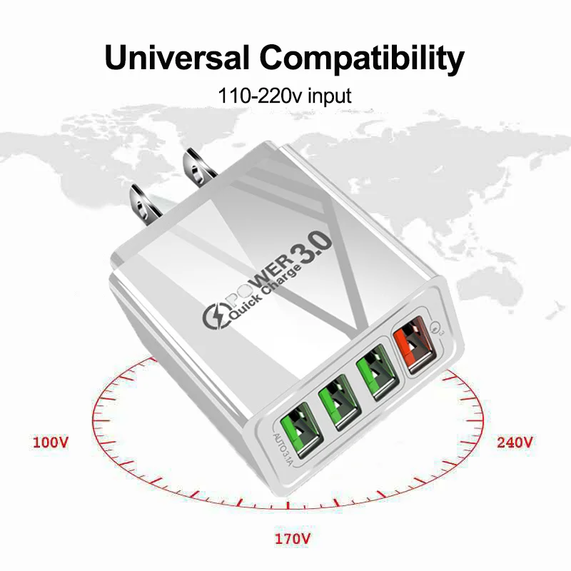 Быстрый адаптер питания3.1A USB зарядное устройствоБыстрая зарядка/защита безопасности/4 usb-порта