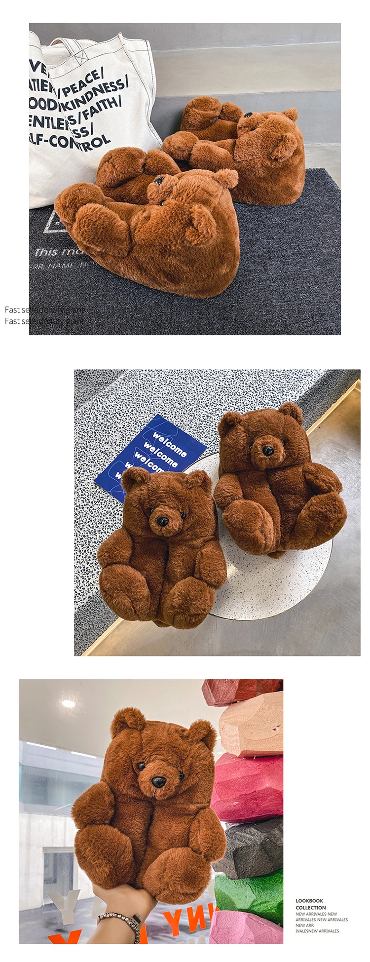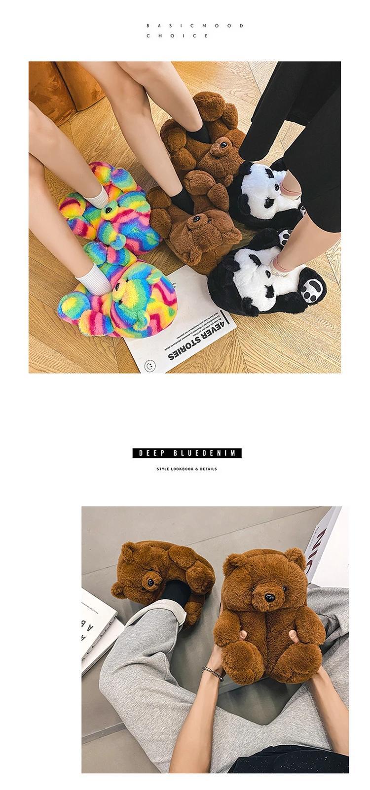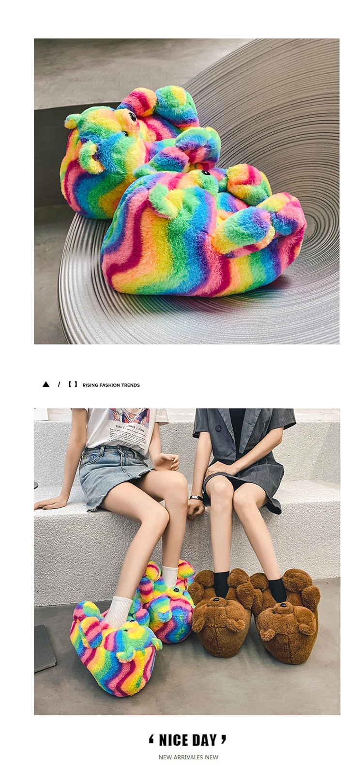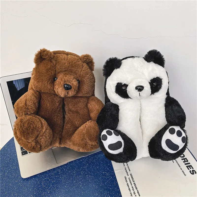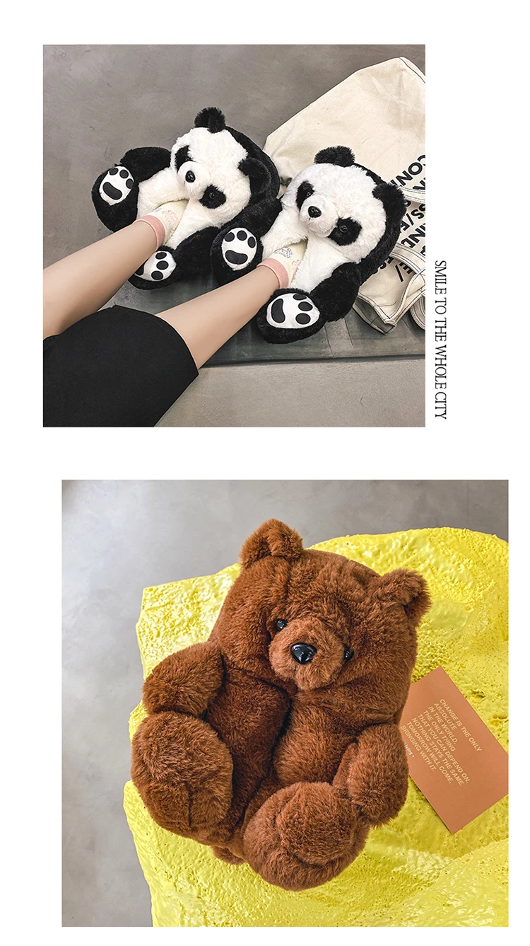 Туфли женские пушистые с радужным медведем, дизайнерские тапочки с пушистым плюшевым мишкой