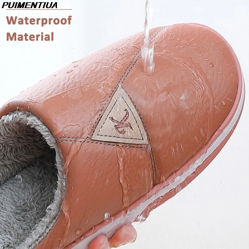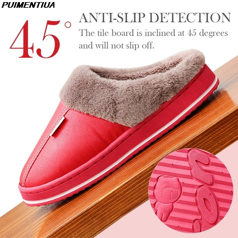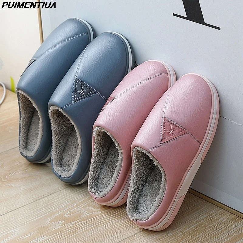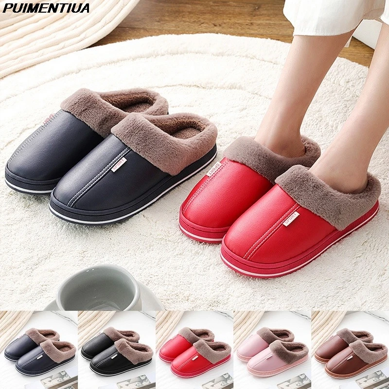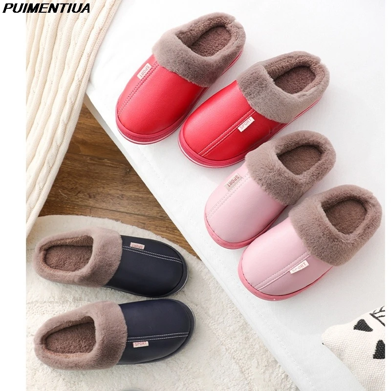 Зимние женские тапочки из искусственной кожи, обувь для пары, короткие плюшевые теплые тапочки для женщин, повседневные Нескользящие мягкие искусственные домашние тапочки, Новинка
