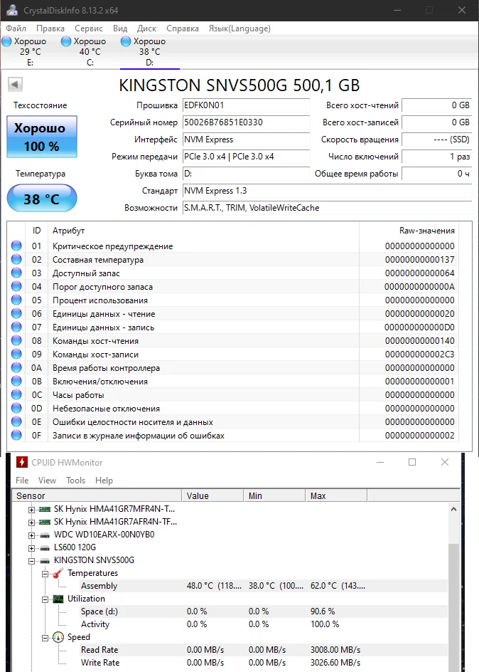 Заказал "15.12.21" пришел "20.12.21" то бишь в пути был "5 дней", купил его за 3197р SSD пришел новый, 1 запуск (мой), 0 чтение и 0 записи. Сразу же все протестировал, скриншоты приложу. При копировании папки GTA 5 (105GB) была скорость 500MB/s, на копирование 105GB ушло 3:40 минуты. Спасибо каналу "2obzora" за план тестирования, повторял точь-в-точь как и у него в видео (У него есть тесты этого накопителя) За такие деньги однозначно нужно брать. По температурам, в среднем 45-50 градусов (без радиатора) при тестировании максимальное было 62 градуса.
