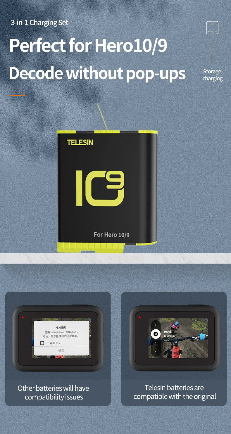 TELESIN батарея 1750 mAh для GoPro Hero 10 3 способа светодиодный светильник зарядное устройство для батареи TF карта Батарея для хранения для GoPro Hero 9 Аксессуары
