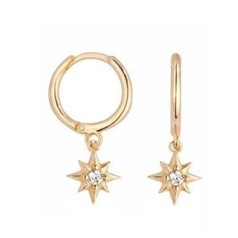 Серьги-кольца женские с крестом и звездой, под золото и серебро