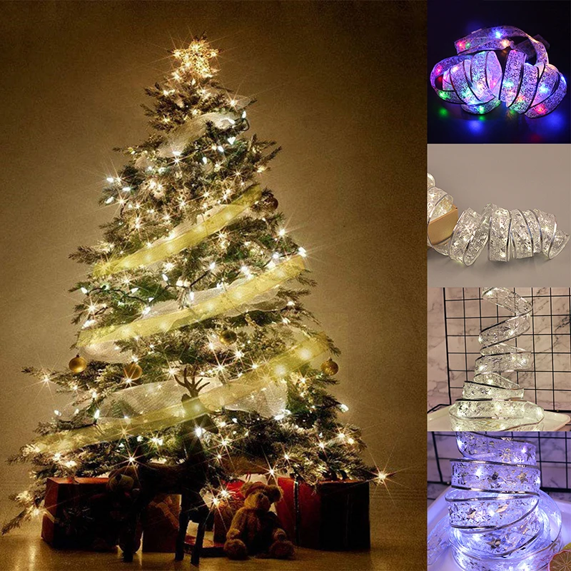 Особенности: гирлянда с гирляндами, Рождественская лента, банты с светодиодный орнаментом на рождественскую елку, Новогодний Декор для дома Navidad
