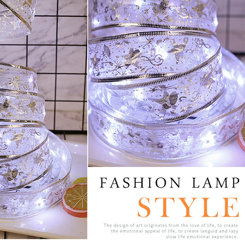 Светодиодная гирлянда 4 м с шелковой лентой, медный провод, Рождест...