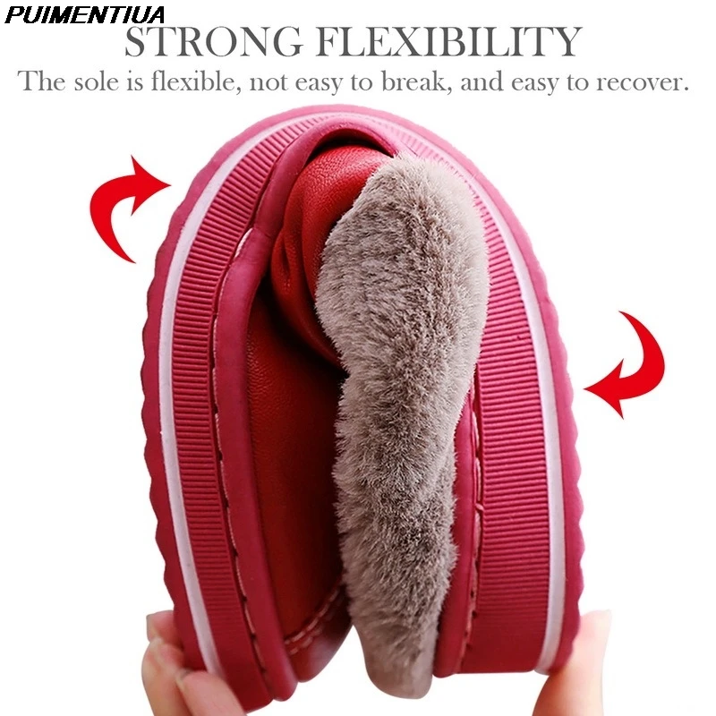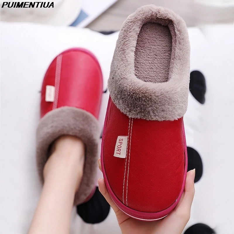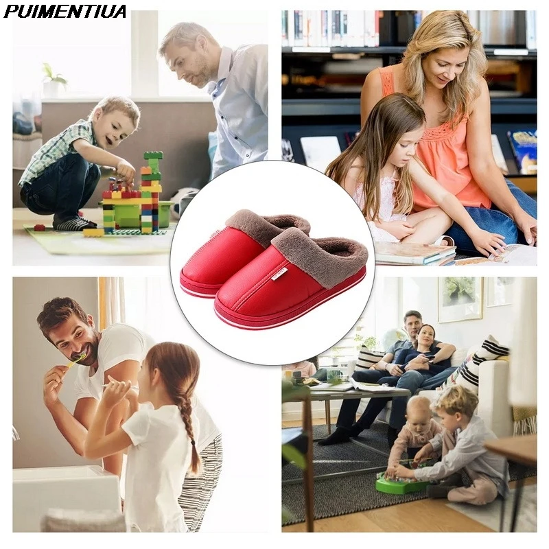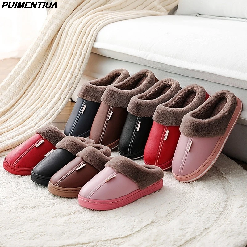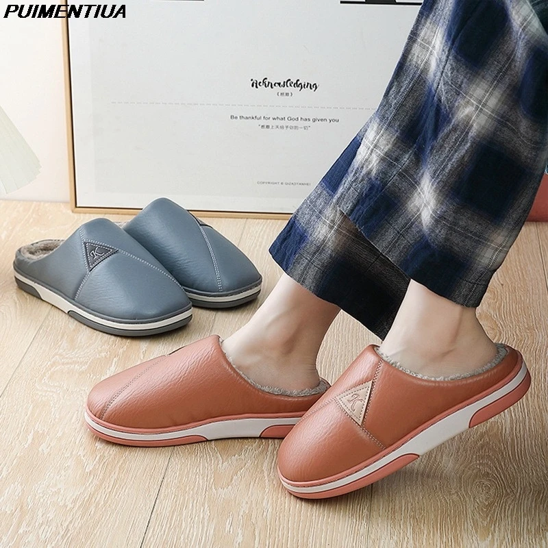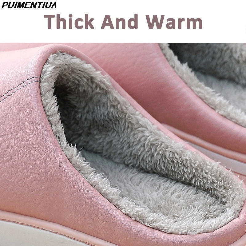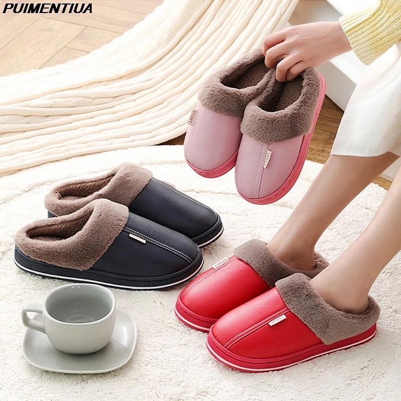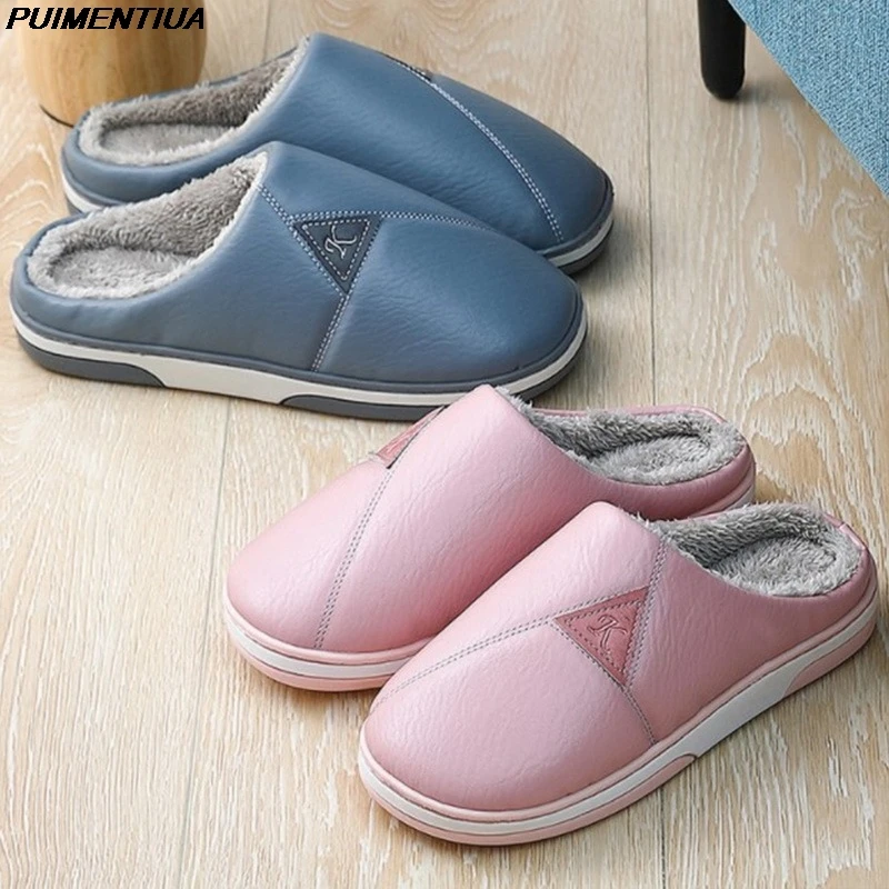 Зимние женские тапочки из искусственной кожи, обувь для пары, корот...