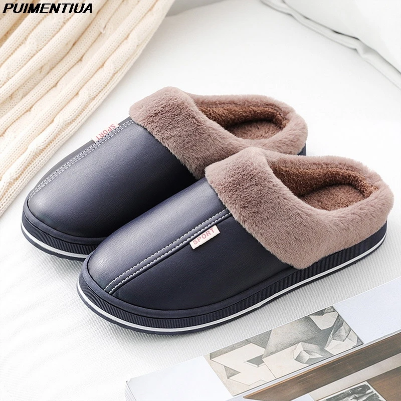 Водонепроницаемые домашние меховые Тапочки большого размера для муж...