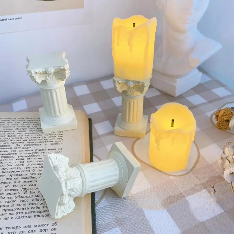 Беспламенные светодиодный свечи, чайный светильник, креативная лампа с питанием от батарейки, римская колонка, свечи, лампа в стиле Ins, украшение для дома, освещение