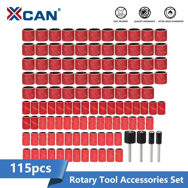 Абразивный диск XCAN, 115 шт., зернистость 60, 120, 320, 14, 12 дюйма, набор шлифовальных барабанов с шлифовальной насадкой, шлифовальная лента, подходит для вращающегося инструмента Dremel