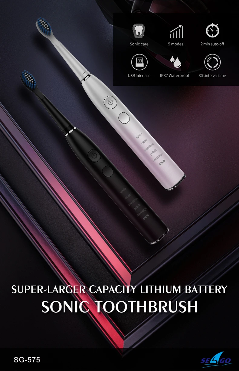 Зубная щетка SEAGO SG575 звуковая Водонепроницаемая с зарядкой от U...