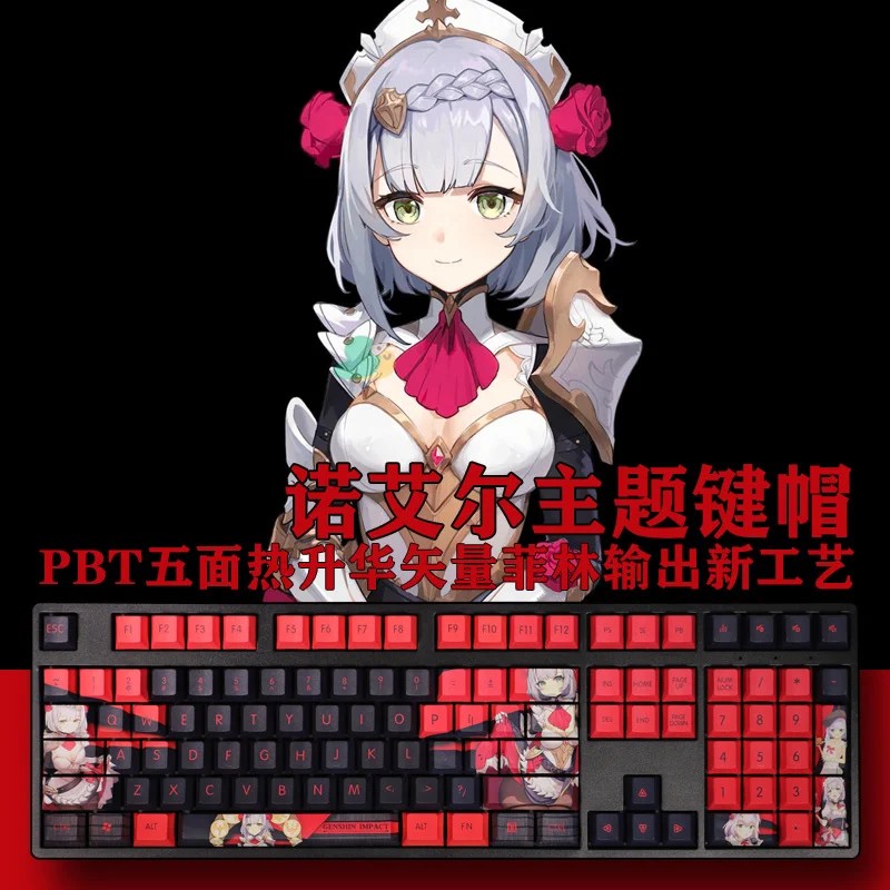 Колпачки для ключей с сублимационной печатью, двухмерные игровые колпачки для ключей аниме Genshin Impact Noelle Cherry, 1 комплект