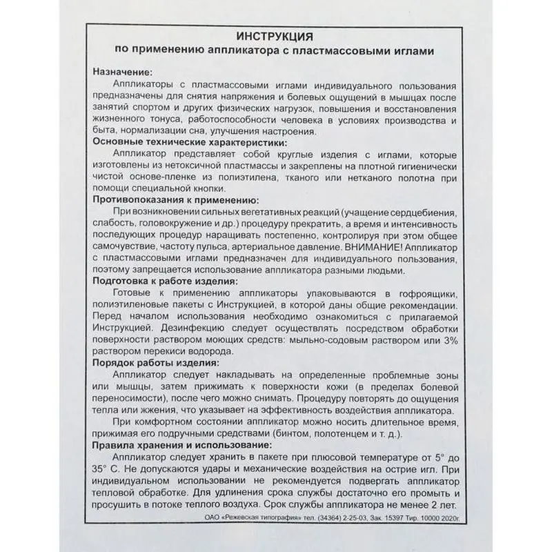 Аппликатор Кузнецова 144 колючки спанбонд, голубой, 260x560 мм Мас...