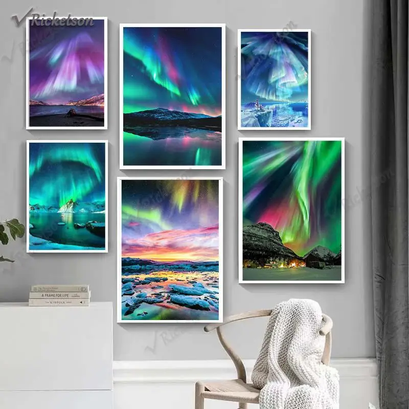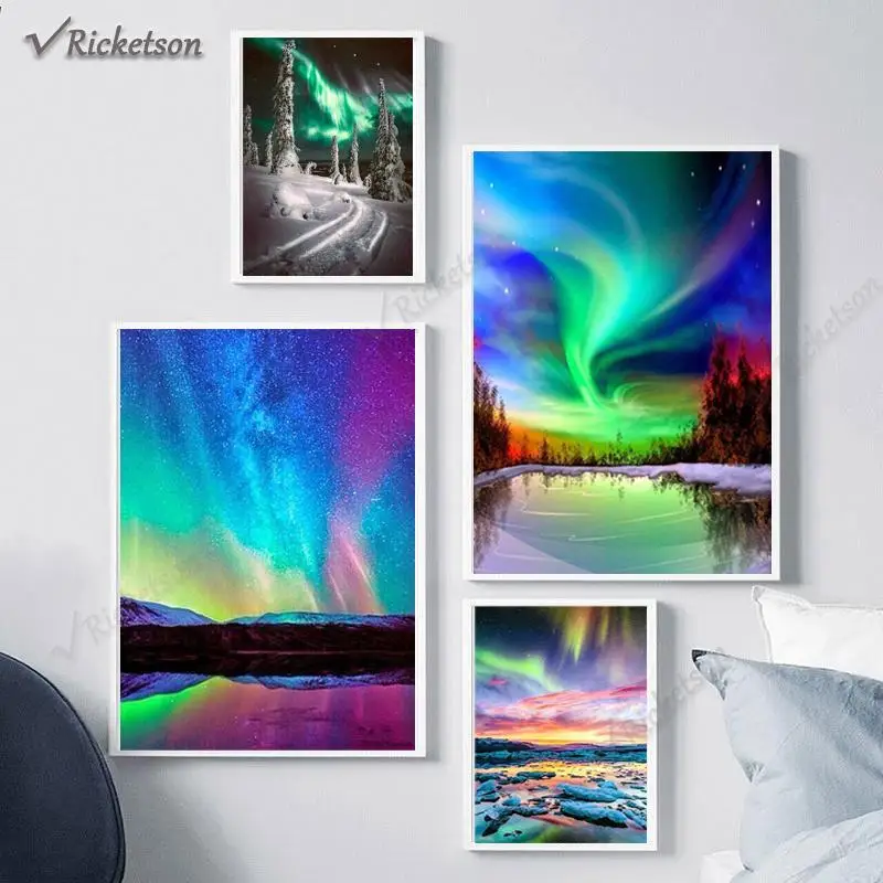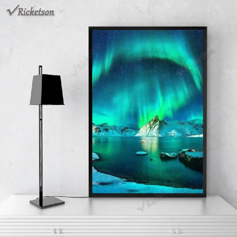 Природный ландшафт флуоресцентная лодка стену художественный постер...