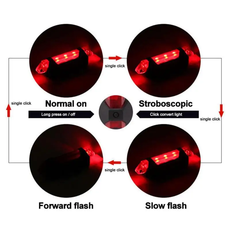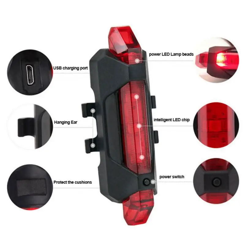 Задний светодиодный фонасветильник с зарядкой через USB для горных и дорожных велосипедов