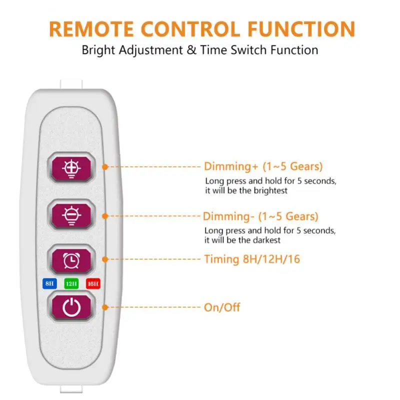 2. Этот светодиодный светильник для выращивания может быть установлен для выключения после 8H/12H/16H. После установки времени, не выключайте светильник или не отключайте питание вручную, светильник включается автоматически одновременно на следующий день.