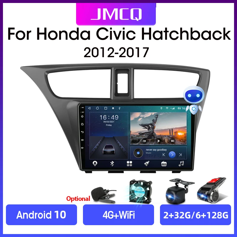 Мультимедийная магнитола JMCQ для Honda Civic Hatchback 2012-2017, Android 10, 2 din