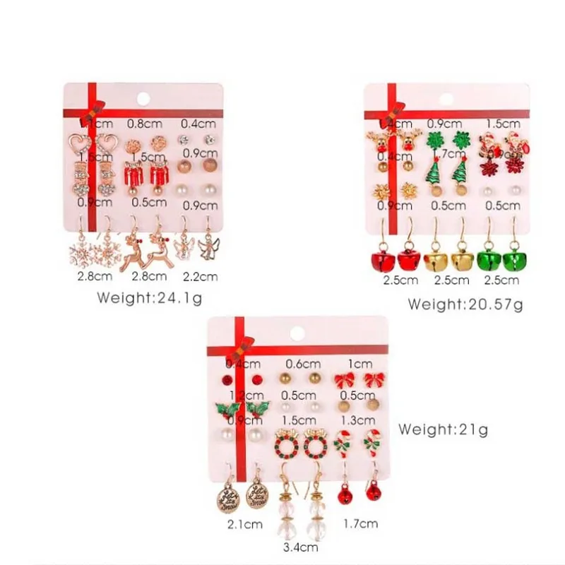 Набор рождественских серег, 12 пар Санты, дерево, фотоколокольчики, ангел, подарок