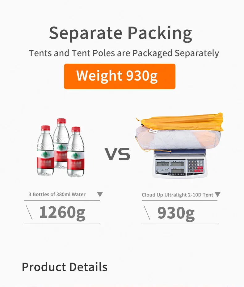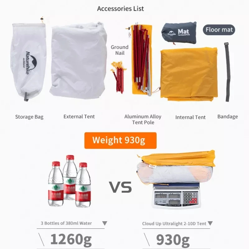 Палатка Naturehike 10D Cloud Up 2, Ультралегкая нейлоновая Водонепроницаемая 10D для туризма и походов, 930 г