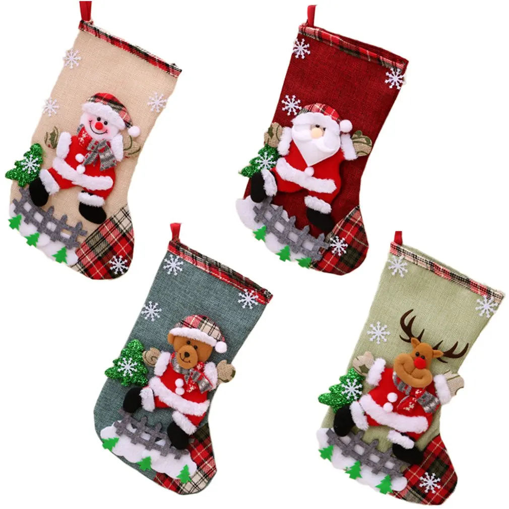 Рождественские подвесные строительные носки, большие декоративные ботинки, льняные красочные украшения для рождественской елки