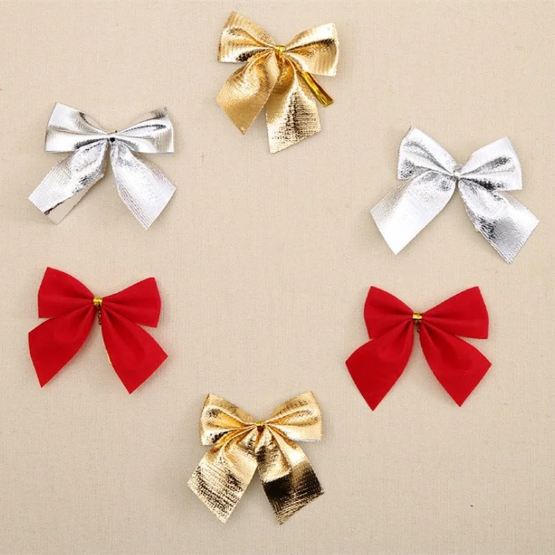 12 шт.лот, КрасныйЗолотойСеребряный 5 см Рождественский бант, Рожде...