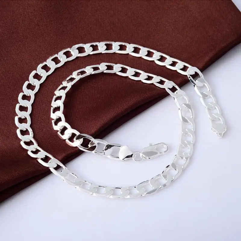 Цепочка из серебра 925 пробы для мужчин, плоская цепь с боковыми до...