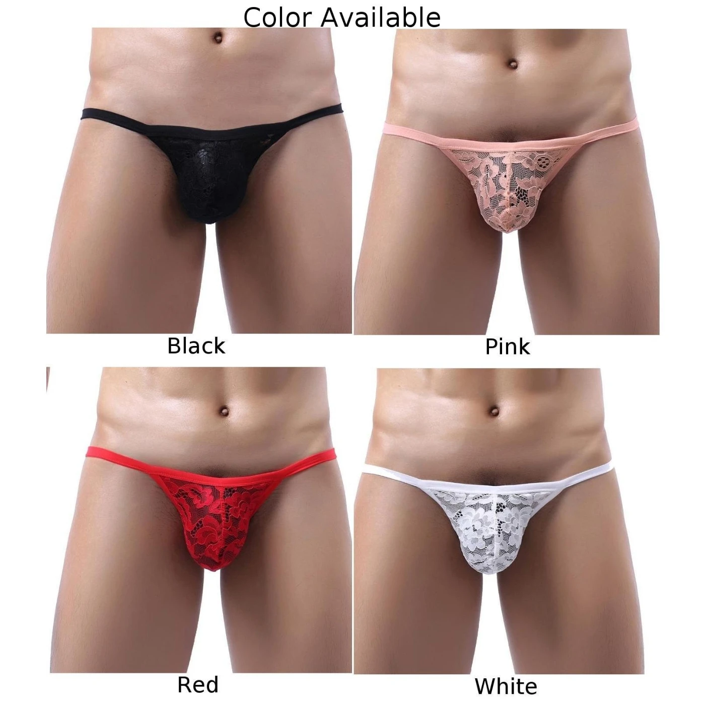 Мужское сексуальное кружевное нижнее белье Bulge U Pouch, трусы для мужчин, трусы с Т-образным ремешком, прозрачные эротические Соблазнительные трусы с низкой посадкой