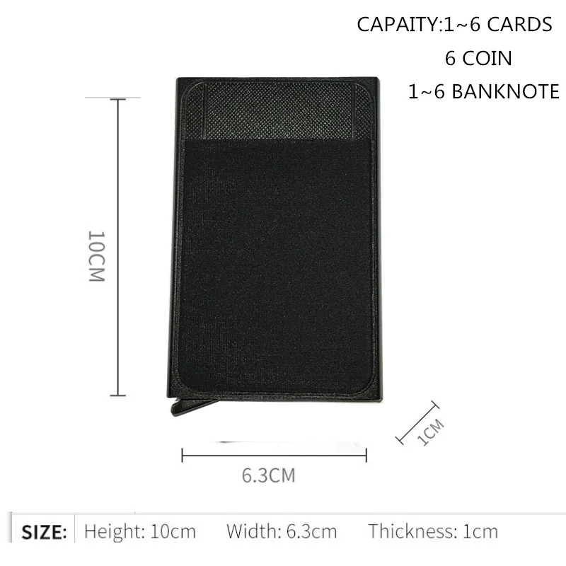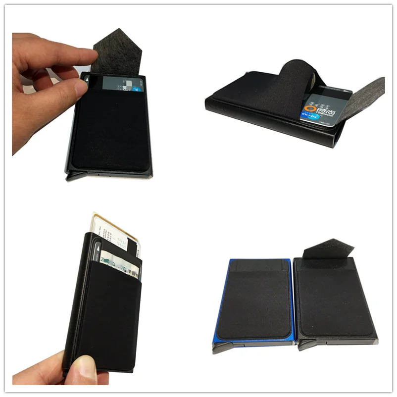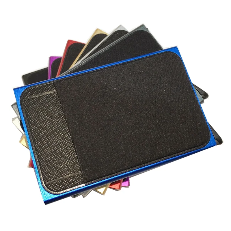 Алюминиевый кошелек с эластичным задним карманом, ID держатель для кредитных карт, RFID мини тонкий кошелек для монет, автоматическая всплывающая коробка для банковских карт